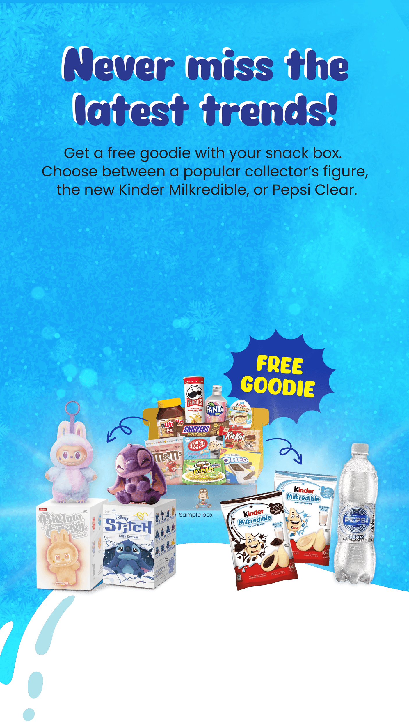 FÄ dina mÄnatliga snacks frÄn hela vÀrlden. Varje mÄnad nytt land, nya snacks och nya lÀckra Àventyr av exklusiva produkter som du inte lÀtt kan hitta i din lokala butik.